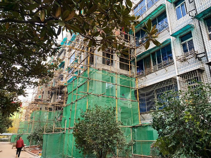 進(jìn)入長沙某小區(qū)小區(qū)可以看到,臨街的樓棟門口臨時搭建的通道旁一架9層樓高的框鋁結(jié)構(gòu)架已經(jīng)初具模樣,建筑工人正在頂層施工。不久后,這里將建成該小區(qū)首個加裝電梯,在其他樓棟業(yè)主的眼中,籌建人陳生成了小區(qū)第一個“吃螃蟹”的人,關(guān)于舊樓加裝電梯的一舉一動成為了小區(qū)業(yè)主津津樂道的“新聞”。